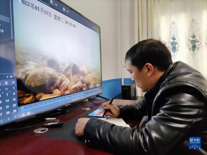 工作人員在云南省昭通市鎮(zhèn)雄縣魚洞生態(tài)觀測點記錄監(jiān)測情況(2022年1月11日攝)。新華社記者 林碧鋒 攝