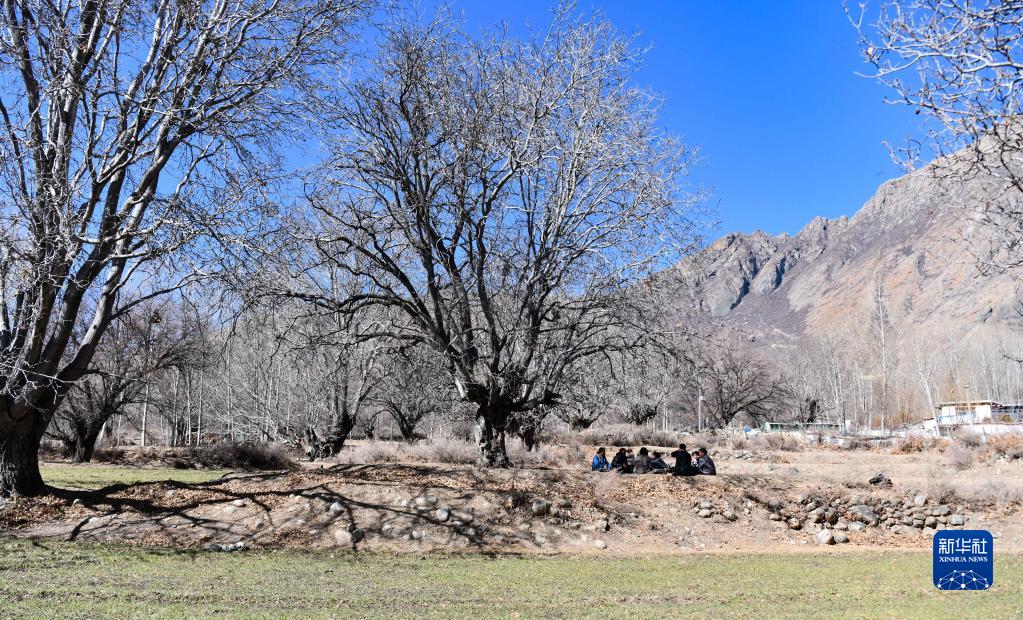 山南市加查縣拉崗村的村民在核桃樹(shù)下聊天拉家常(2月1日攝)。新華社記者格桑邊覺(jué) 攝