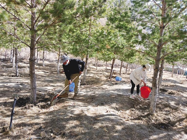 春風送暖,高原吐綠。近日,拉薩市林草局組織多家單位在北山生態(tài)修復造林點開展幼林撫育活動。