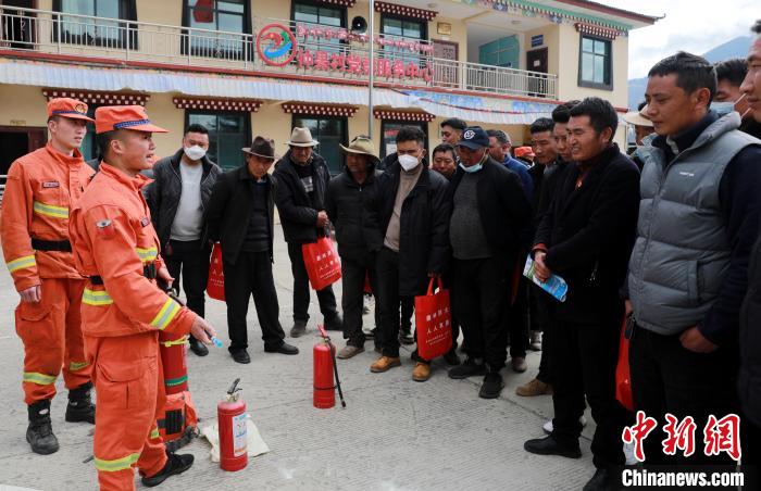 林芝市森林消防支隊指戰(zhàn)員在進行防火宣傳知識講解?!∥骼@拉翁 攝