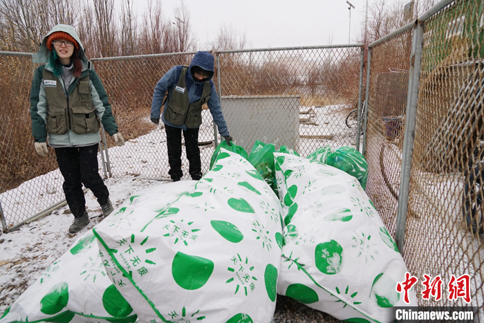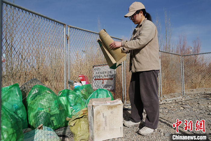 資料圖為3月24日,青海省海西州格爾木驛的志愿者將垃圾分類后進(jìn)行打包。 中新社記者 馬銘言 攝