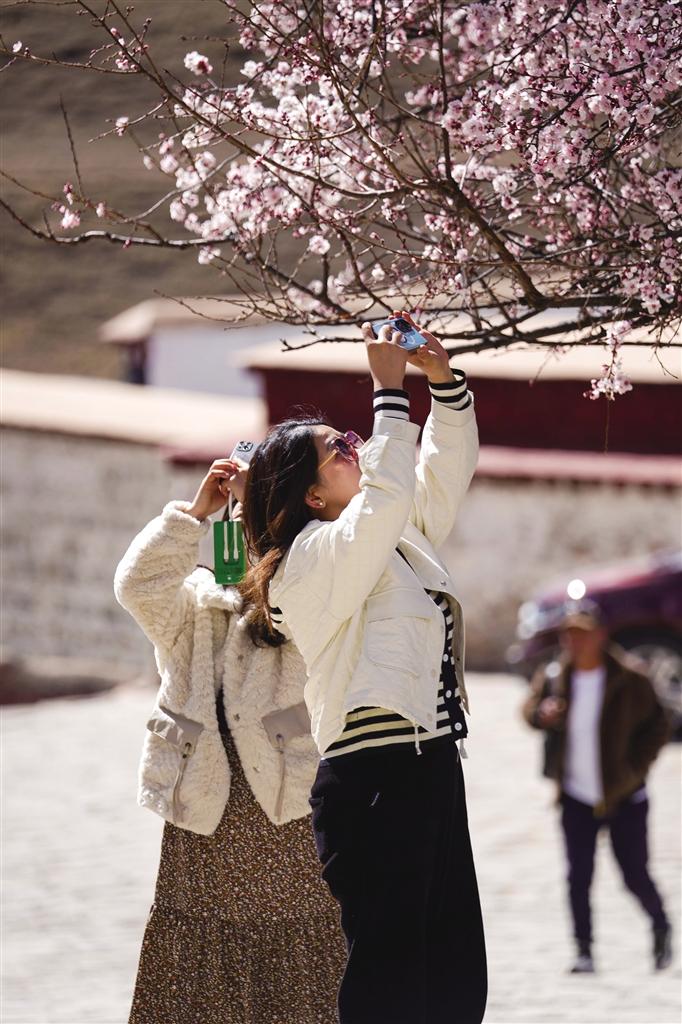 帕邦喀距離拉薩市區(qū)不到一小時車程,每年桃花盛開的時候,帕邦喀便成為人們賞桃花、踏春游的熱門景點。昔日里略顯安靜的帕邦喀此時也因賞花的人們熱鬧起來。帕邦喀桃花盛開的美景也在微信朋友圈、短視頻平臺等社交媒體上刷屏,吸引著大批市民游客拍照打卡。