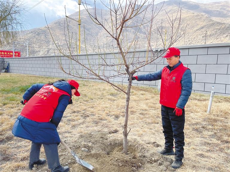 拉薩市城關(guān)區(qū)娘熱街道植樹護(hù)綠 美化家園