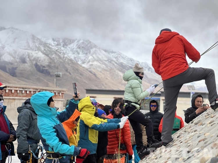 隨后,西藏自治區(qū)登山隊專業(yè)教練還組織山友們進行了適應性徒步訓練、登山技術(shù)培訓等?!拔沂菑馁F州來的,這次登山大會是通過朋友了解到并過來參加的。為了大家的安全,主辦方專門提前安排了這么一個科普和訓練,我覺得這很有必要,大家可以更多的了解一些登山知識”,吳先生剛結(jié)束登山技術(shù)訓練下來說,“之前爬過五千多米的山,這次也應該可以登頂”。(中國西藏網(wǎng) 記者/德吉卓瑪)