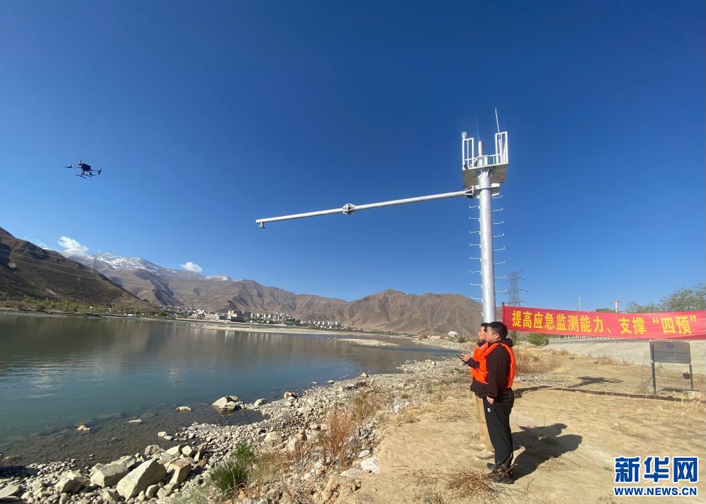 應(yīng)急演練現(xiàn)場(chǎng),參訓(xùn)技術(shù)人員正在操作水文監(jiān)測(cè)設(shè)備——無(wú)人機(jī)。(4月27日攝)新華社記者 春拉 攝