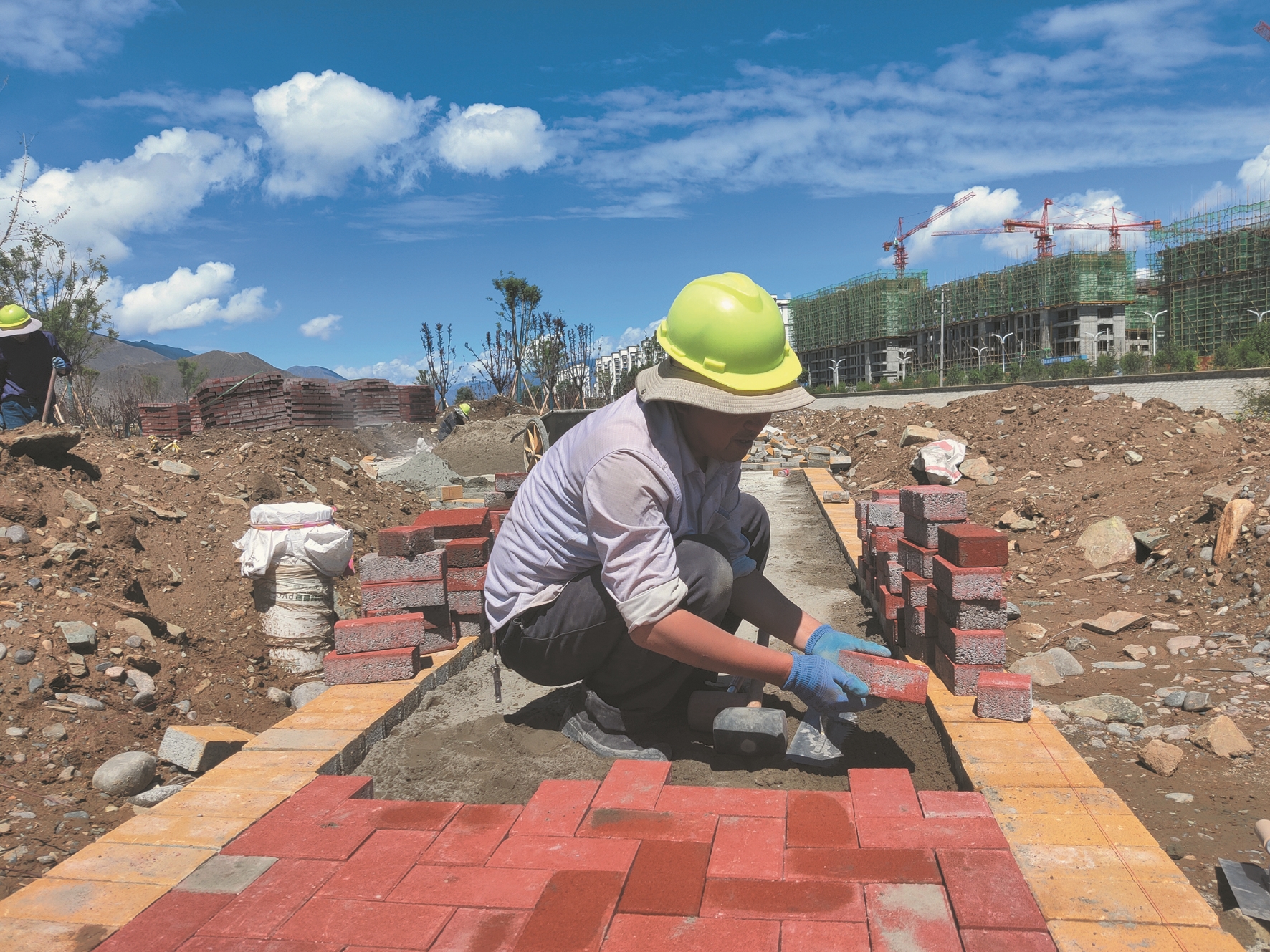 圖為工人正在現場施工。拉薩融媒記者 余洋洋攝