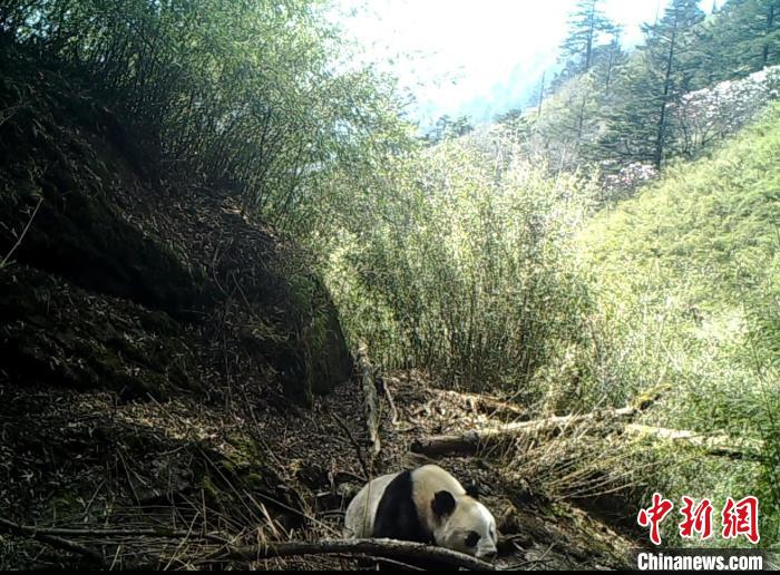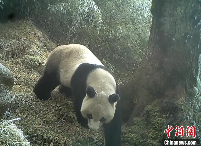 紅外相機(jī)拍攝到的野生大熊貓?!〈笮茇垏?guó)家公園平武老河溝片區(qū)供圖