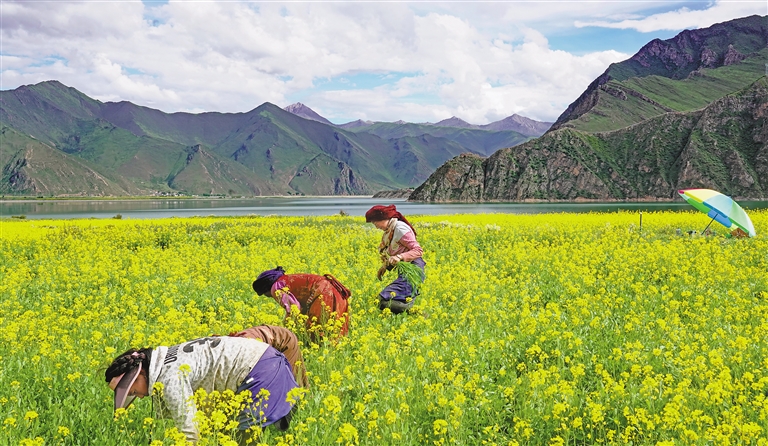 墨竹工卡距離拉薩市區(qū)68公里,是拉薩的“東大門”,平均海拔4200米,總面積5500平方公里,6.5萬人。近年來,墨竹工卡縣致力于墨竹小油菜“三產(chǎn)融合”發(fā)展,壯大一產(chǎn)、提升二產(chǎn)、延伸三產(chǎn)。2023年墨竹工卡縣共種植墨竹小油菜3.03萬畝,油菜籽產(chǎn)量預(yù)計達(dá)0.45萬噸,預(yù)計實(shí)現(xiàn)總產(chǎn)值3600萬余元。2022年縣菜籽油榨油廠通過與當(dāng)?shù)厝罕姾炗喪召徍贤瑤?600余戶農(nóng)戶增收400.6萬元。墨竹旅游業(yè)呈現(xiàn)快速發(fā)展的勢頭,接待服務(wù)能力明顯提高。今年上半年,全縣接待旅游者3.8萬人次、同比增長90%,旅游總收入331.45萬元,同比增長259.7%。文/圖 記者 張雪芳