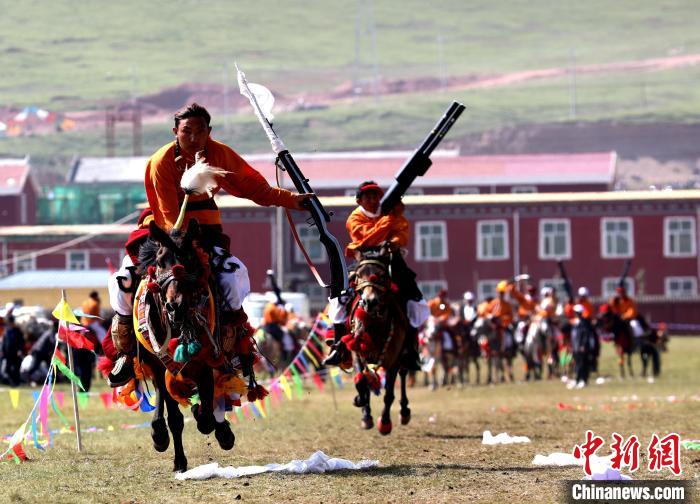 資料圖為玉樹州雜多縣瀾滄江源生態(tài)文化旅游系列活動(dòng)開幕式上的馬術(shù)表演。薛蒂 攝