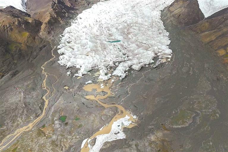 圖為長江源頭格拉丹東雪山姜根迪如冰川。(無人機拍攝)記者 曲珍 攝