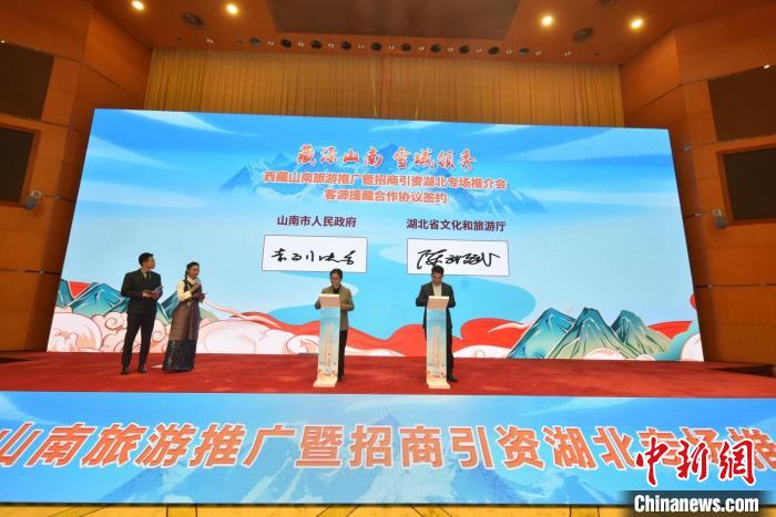 現(xiàn)場,山南市人民政府和湖北省文化和旅游廳進行客源援藏合作協(xié)議簽約,山南各縣區(qū)政府及機構與8家企業(yè)就招商引資項目進行簽約。