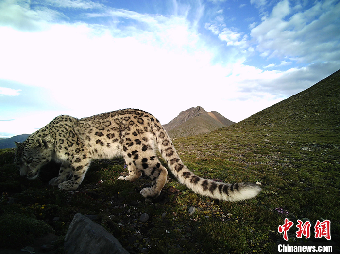 圖為7月16日,西藏拉薩市堆龍德慶區(qū)“乃朗谷雪豹重要棲息地”內(nèi)紅外線相機拍攝到的雪豹。 中新社發(fā) 山水自然保護中心 供圖