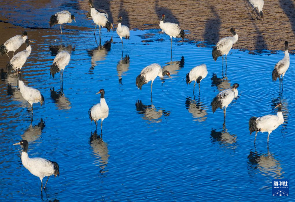 10月23日,成群的黑頸鶴在拉薩市當(dāng)雄縣阿熱濕地內(nèi)覓食。黑頸鶴是全球十五種鶴類中,唯一在高原地區(qū)繁殖和越冬的鶴類,屬中國國家一級(jí)保護(hù)野生動(dòng)物。 [詳細(xì)] -