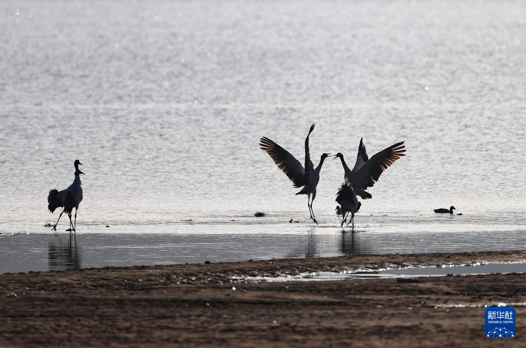 10月21日,黑頸鶴在西藏那曲市申扎縣買巴鄉(xiāng)附近的濕地“翩翩起舞”。 [詳細(xì)]