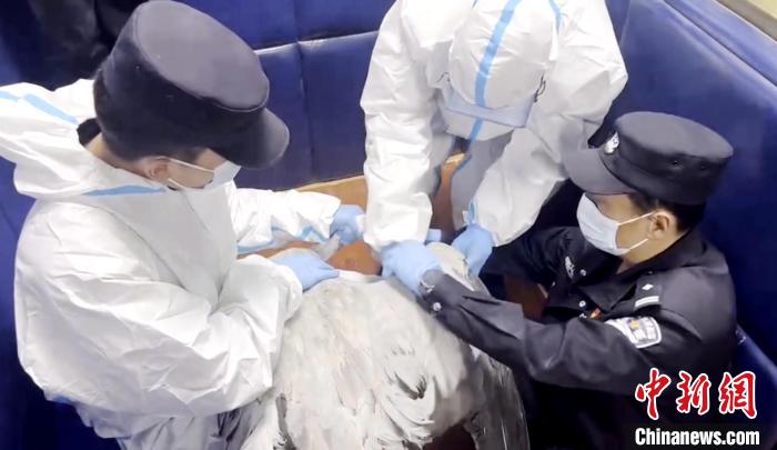 圖為民警和瑪可河林業(yè)局工作人員對(duì)灰鶴進(jìn)行詳細(xì)檢查。 曹民鍇 供圖