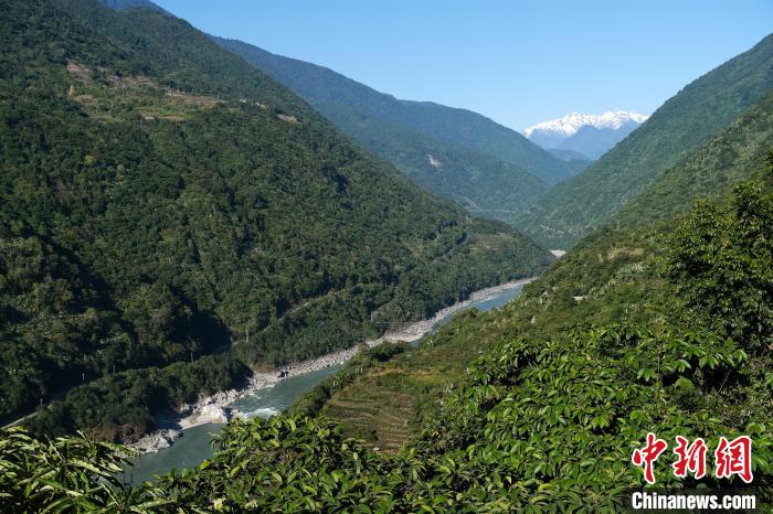 12月19日,西藏墨脫縣雅魯藏布江沿岸植被以及遠(yuǎn)處的雪山。中新社記者 江飛波 攝