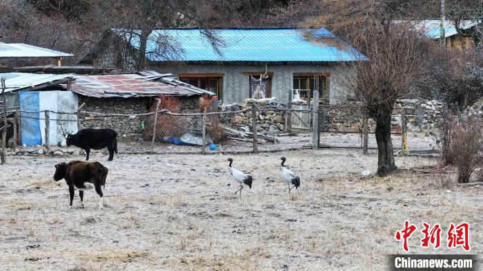 圖為西藏林芝市工布江達(dá)縣錯高村里的黑頸鶴。張寧 攝