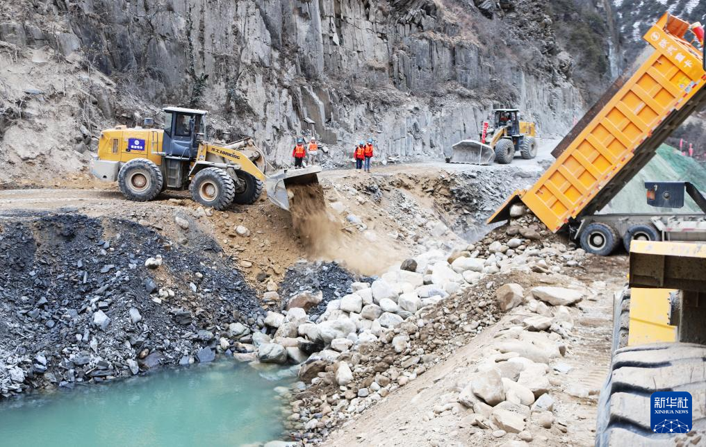 大唐扎拉水電站截流施工現(xiàn)場(chǎng)(1月3日攝)。新華社記者 關(guān)明輝 攝