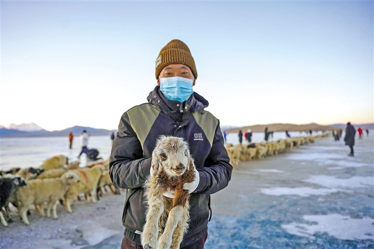 西藏山南市浪卡子縣打隆鎮(zhèn)推瓦村牧羊轉(zhuǎn)場(chǎng):藍(lán)色冰湖上的生命律動(dòng)