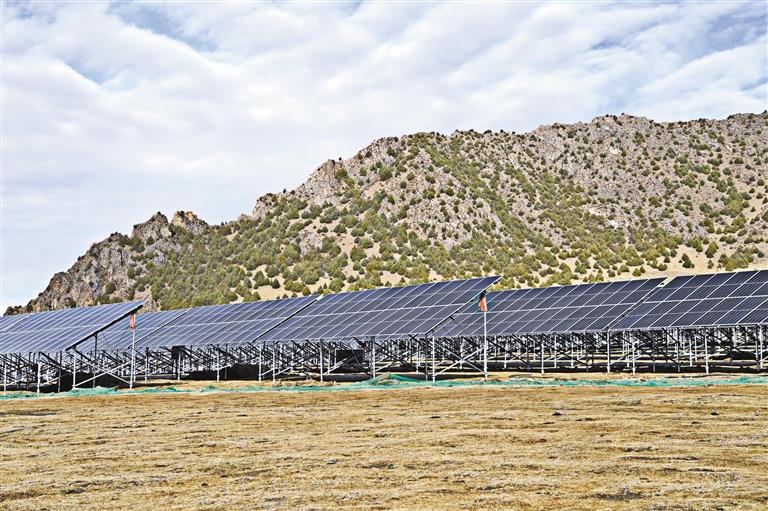 圖為那曲市索縣熱瓦鄉(xiāng)熱熱村50WM光伏儲能建設(shè)項(xiàng)目。記者 王敏 攝