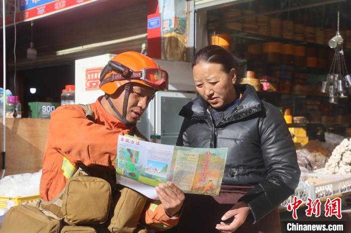 圖為消防員正在開展防火知識(shí)普及。西繞拉翁 攝