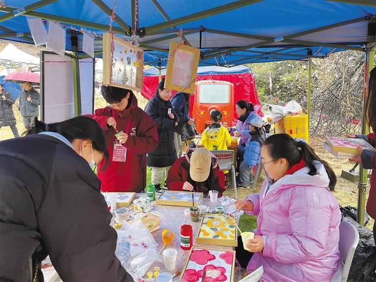 察隅縣桃花節(jié)的DIY活動現(xiàn)場,參與者將盛開的桃花作為美術素材融入自己制作的肌理畫中。