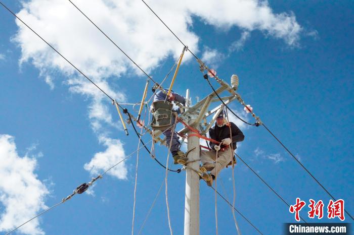 圖為電力人員正在架設鳥巢。國網(wǎng)青海省電力公司供圖