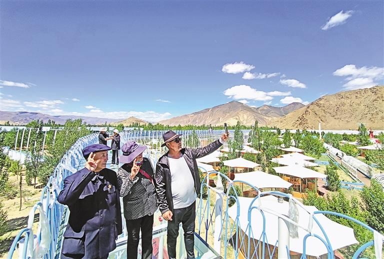 暢游恒溫泳池樂享安康端午、走上玻璃棧道遠(yuǎn)眺雅江風(fēng)景、坐上觀光車打卡車?yán)遄又黝}園、約上三五好友在花園式露營(yíng)地“過林卡”……端午假期首日,在山南市扎囊縣桑耶鎮(zhèn)西普農(nóng)博園,記者看到,扎囊縣在探索“農(nóng)文旅體”深度融合發(fā)展的道路上,讓鄉(xiāng)村詩意生活越來越有聲有色、有滋有味,吸引了越來越多的游客前來度假游玩。