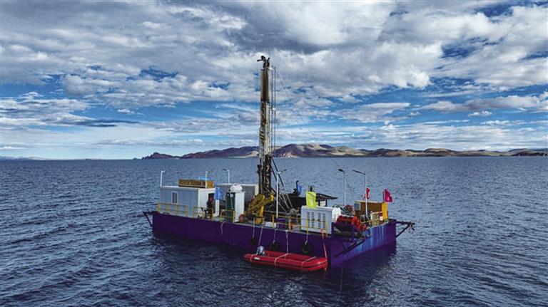 納木錯水上鉆探平臺(無人機(jī)照片)。 新華社記者 晉美多吉 攝