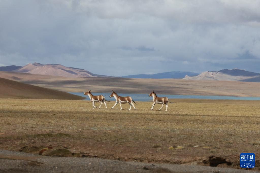 這是令戈錯(cuò)湖邊的藏野驢群(9月8日攝)。新華社記者 劉詩(shī)平 攝