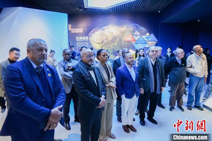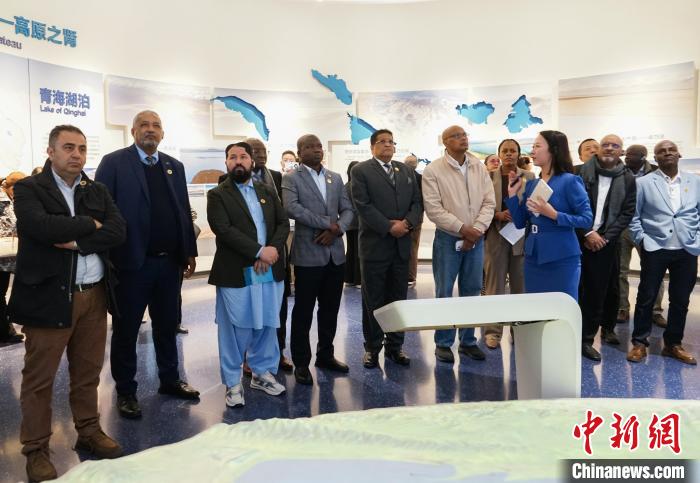 10月9日,中國外交部組織圣多美和普林西比、多米尼加、拉脫維亞、亞美尼亞、斯里蘭卡等近20國駐華使節(jié)代表團到訪青海,開展為期4天的考察交流。當日下午,代表團一行走進位于西寧市的青海省自然資源博物館,了解青海省山川、河流、冰川、生物、礦產等豐富自然資源和生態(tài)文明建設成果,感受“大美青海、自然之窗”的獨特魅力。圖為代表團一行在青海省自然資源博物館內通過模型了解凍土。中新社記者 馬銘言 攝