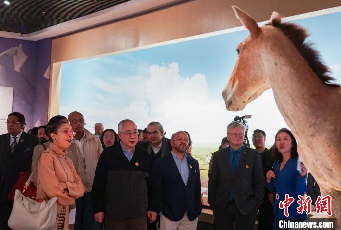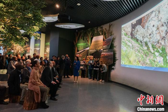 圖為代表團一行在青海省自然資源博物館內了解青海省生物多樣性保護情況。中新社記者 馬銘言 攝