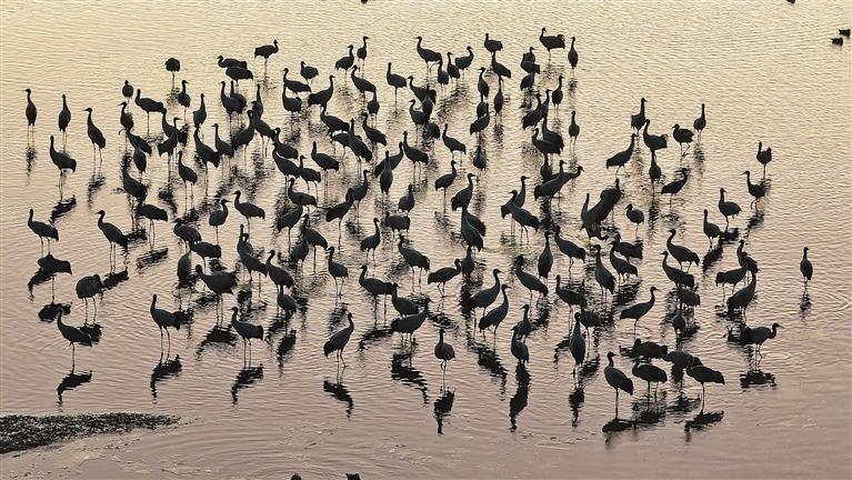 黑頸鶴是全球15種鶴類(lèi)中唯一在高原地區(qū)生活、繁殖的鶴類(lèi),屬?lài)?guó)家一級(jí)保護(hù)動(dòng)物。每年10月中下旬,大批黑頸鶴從藏北高原飛到拉薩河谷,它們?cè)谵r(nóng)田、沼澤地里覓食嬉戲,享受冬日暖陽(yáng)。