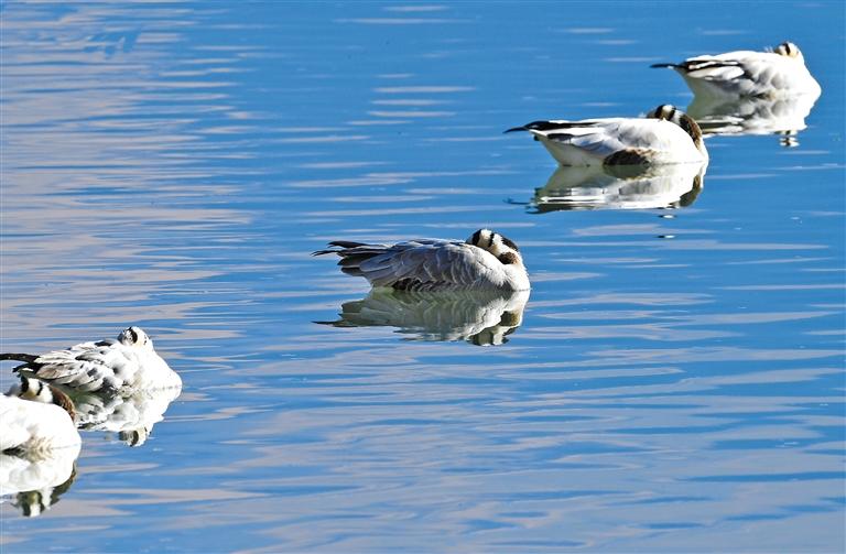 初冬時(shí)節(jié),傍晚時(shí)分,漫步拉薩當(dāng)熱西路,遼闊的拉魯濕地國家級(jí)自然保護(hù)區(qū)(以下簡稱“拉魯濕地”)映入眼簾,俯視近處,水質(zhì)清澈、水量充沛、水面開闊且與拉魯濕地互相補(bǔ)水的中干渠在高大的防護(hù)林下靜靜流淌,水面上一群群赤麻鴨悠閑地游來游去;遠(yuǎn)處布達(dá)拉宮巍然矗立,濕地空氣里彌漫著泥土和植物的芳香,令人心曠神怡。身處喧鬧的市區(qū)卻能如此美景,真是“世外桃源”。