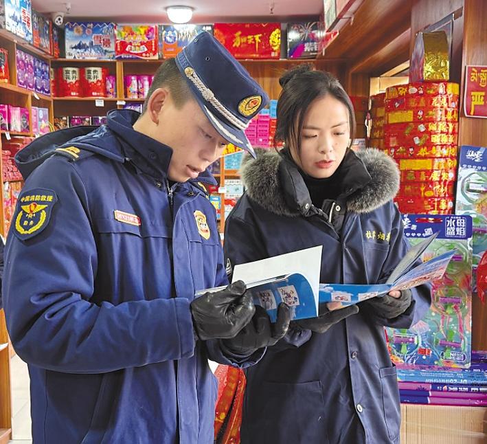 拉薩市消防救援支隊宣傳員走進(jìn)煙花爆竹經(jīng)銷點,為店員科普易燃易爆場所消防安全知識。通訊員 肖暄 攝