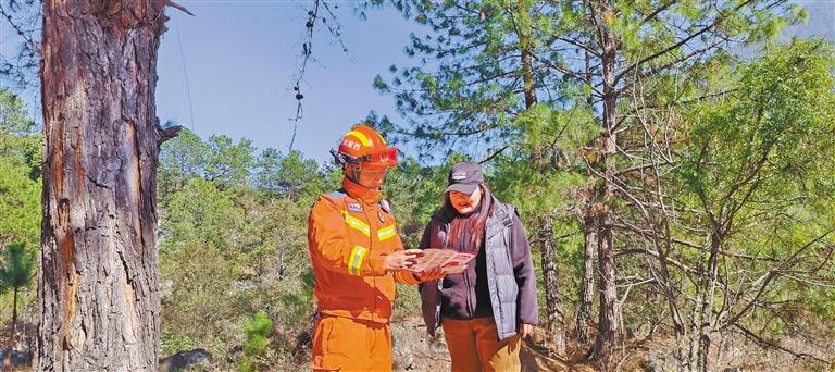 林芝市察隅縣消防救援大隊宣傳員走進(jìn)旅游景區(qū),為游客科普林區(qū)防火常識。通訊員 肖暄 攝