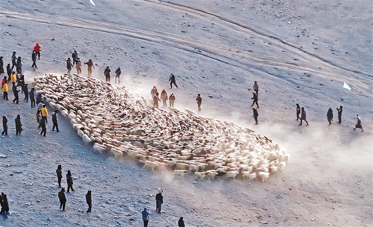 推瓦村牧民將羊群聚攏,準(zhǔn)備轉(zhuǎn)場(chǎng)。