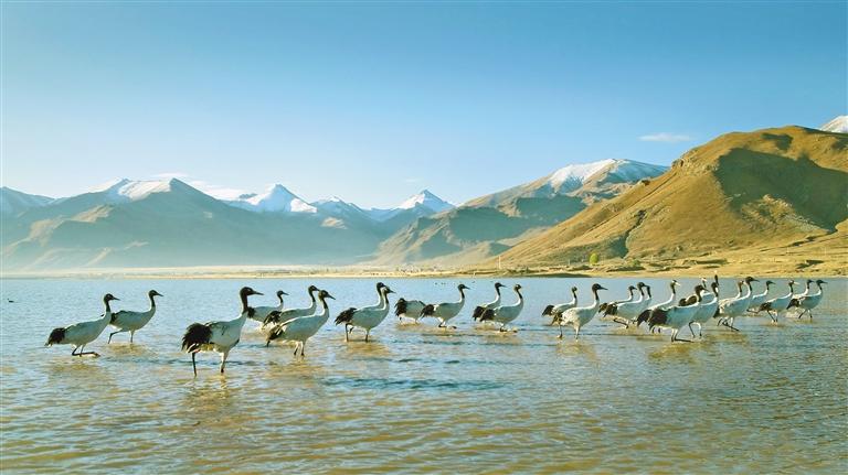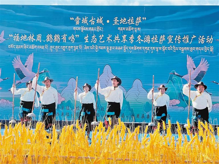 當(dāng)溫暖的陽(yáng)光輕柔地灑在拉薩河谷,黑頸鶴清脆的鳴叫聲喚醒了林周濕地寧?kù)o的清晨。“福地林周·鶴鶴有鳴”生態(tài)藝術(shù)共享季之“冬游拉薩”宣傳推廣活動(dòng),以歌舞表演、生態(tài)主旨演講、黑頸鶴攝影作品展、鶴文化專家座談等,融合了生態(tài)、藝術(shù)與文化的盛宴,讓人在雪山、湖泊與鶴影交織的詩(shī)意中,感受“冬游拉薩”的獨(dú)特魅力。