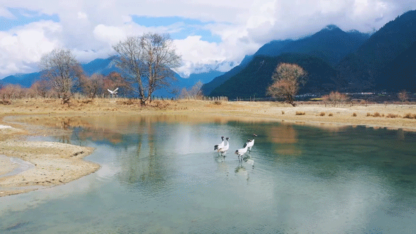 近日,在西藏波密縣境內(nèi),山野間綻放的油菜花、桃花與易貢湖畔翩躚起舞的黑頸鶴,勾勒出一幅充滿生機與活力的春光美景。