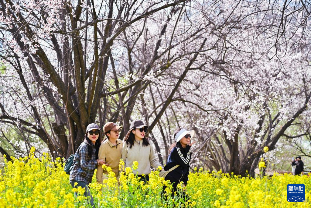 3月29日,游客在林芝市巴宜區(qū)嘎拉村賞花游玩。新華社記者 齊芷玥 攝
