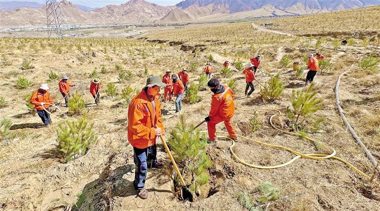 圖為4月3日,拉薩市堆龍德慶區(qū)德陽(yáng)村的植樹造林現(xiàn)場(chǎng)。記者 白瑪澤旺 攝