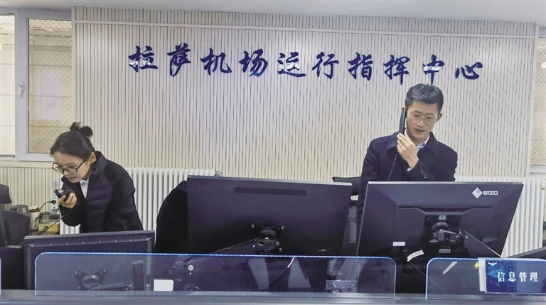 拉薩貢嘎國際機場運行指揮中心緊急調(diào)度機位,保障旅客轉(zhuǎn)機。圖片由 張偉 提供