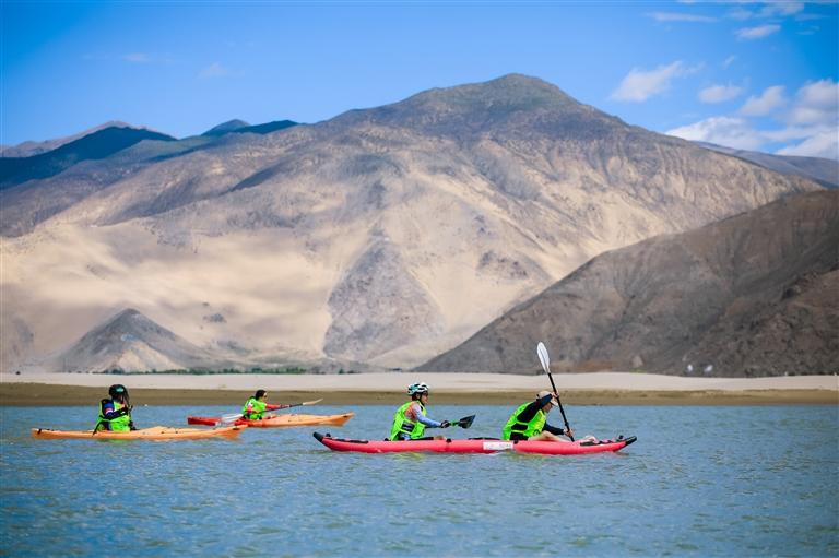 水上皮劃艇項(xiàng)目起點(diǎn)位于桑耶渡口,終點(diǎn)是雅魯藏布江觀景臺(tái)。這里江面寬8至12公里,是雅魯藏布江的最寬處,北接國家4A級(jí)旅游景區(qū)桑耶寺,南臨第一莊園朗塞嶺,是絕佳的觀景、拍攝地。最后的越野跑項(xiàng)目沿著雅魯藏布江邊進(jìn)行。