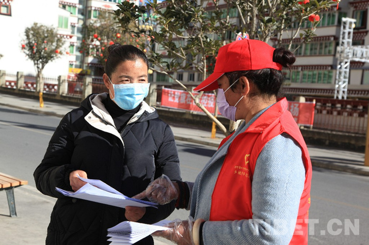 圖為鄉(xiāng)城縣返鄉(xiāng)大學(xué)生開展疫情防控志愿服務(wù)