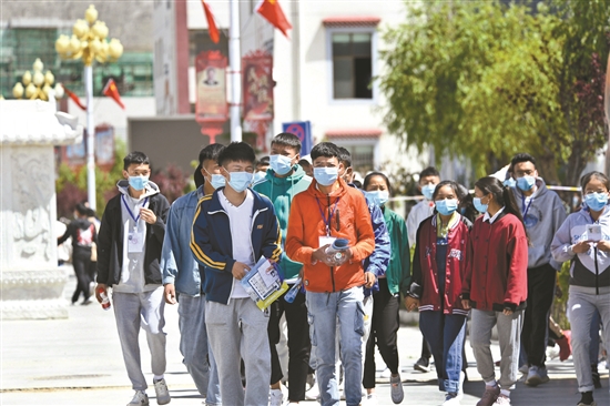 7月7日高考首日,第一場考試結(jié)束,拉薩中學考點的考生走出考場。記者 李洲 洛桑 次旺 唐斌 攝