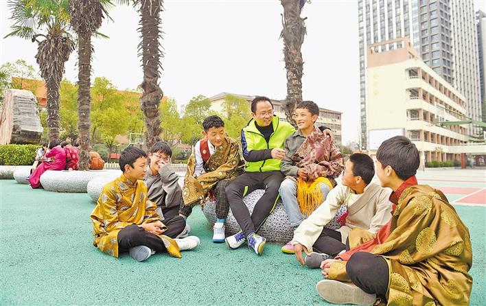 合肥三十五中副校長(zhǎng)儲(chǔ)軍與西藏班同學(xué)促膝談心。西藏日?qǐng)?bào)記者 索朗瓊珠 次仁片多 攝