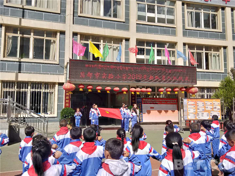 圖為昌都市實驗小學在學校操場開展新少先隊員入隊儀式