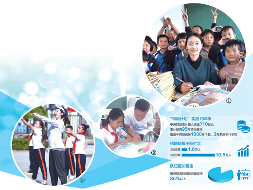 農(nóng)村義務(wù)教育階段學(xué)校教師特設(shè)崗位計劃(簡稱“特崗計劃”)始于2006年,每年公開招考選聘數(shù)萬名高校畢業(yè)生到中西部貧困縣農(nóng)村學(xué)校任教。[詳細(xì)] -