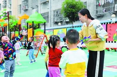 圖為鷹潭市高新區(qū)社會事業(yè)局高級教師在小英小學(xué)和小朋友們一起開主題班會。曾志凡攝/光明圖片