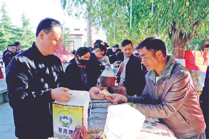 圖為當?shù)厝罕娫谶x購扶貧產(chǎn)品。本報記者 次旺 攝